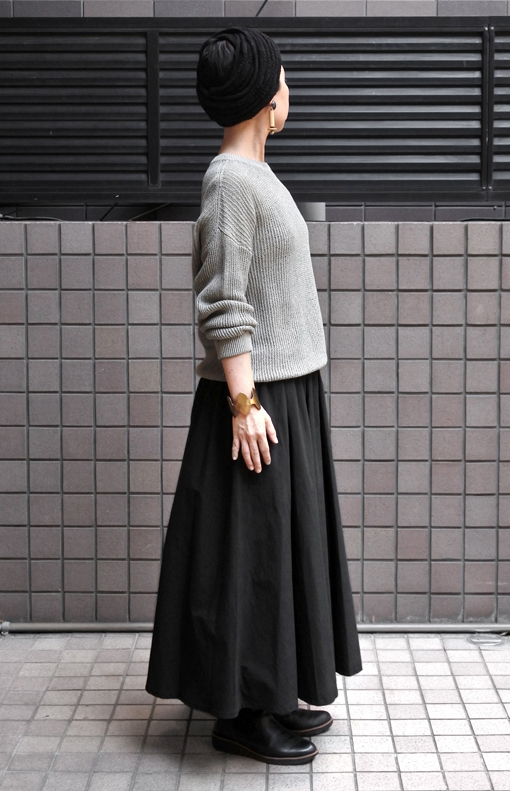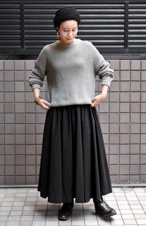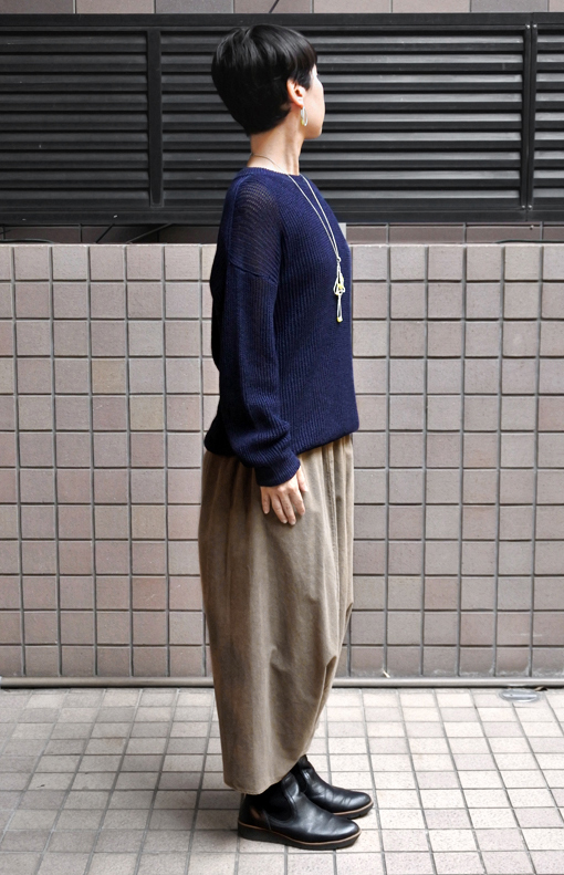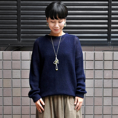 和紙とペルー綿を掛け合わせた糸で、ざっくりと片あぜ編みで仕上げたセーターです。