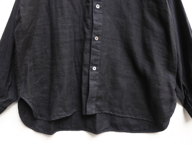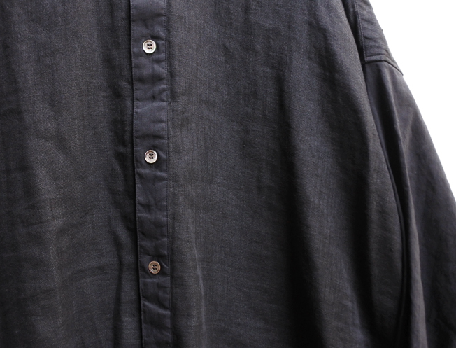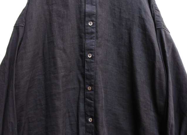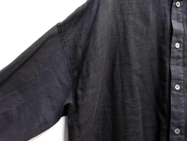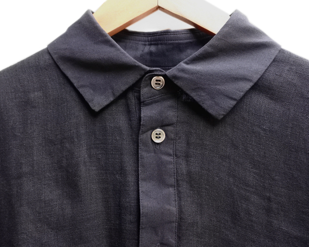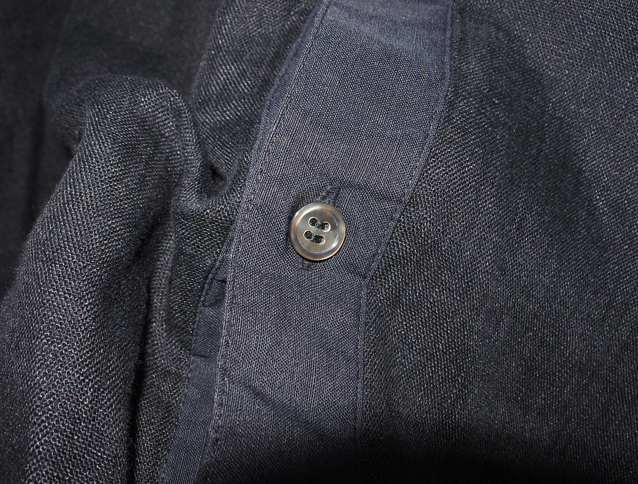 袖や襟、ボタンのある前あき部分には、同じくペルーコットンとベルギーリネン掛け合わせた、