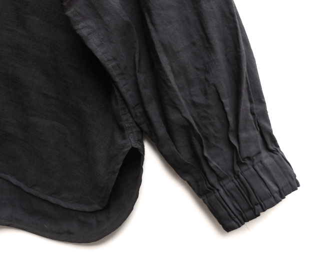 身頃に綿麻ダブルガーゼ、袖に綿麻の布帛を使用した