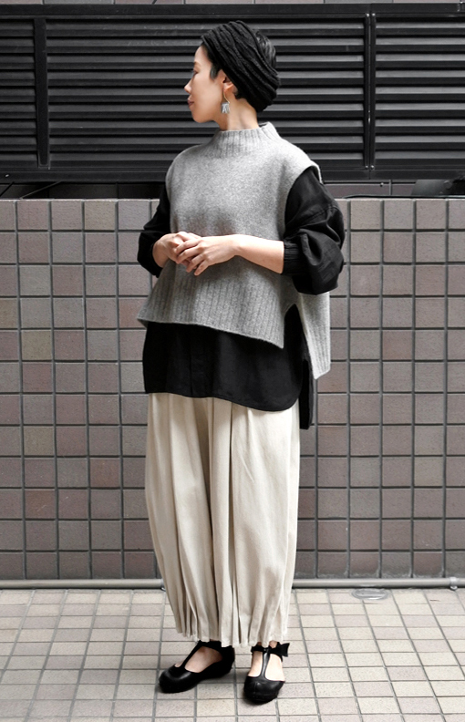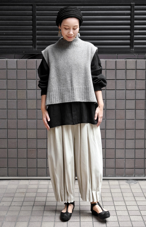 寒くなってきたら、ベストやカーディガンを重ねたレイヤードスタイルもおすすめです。