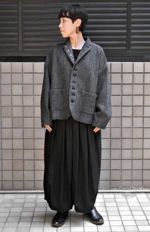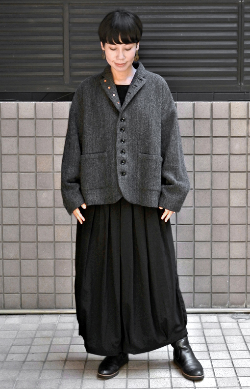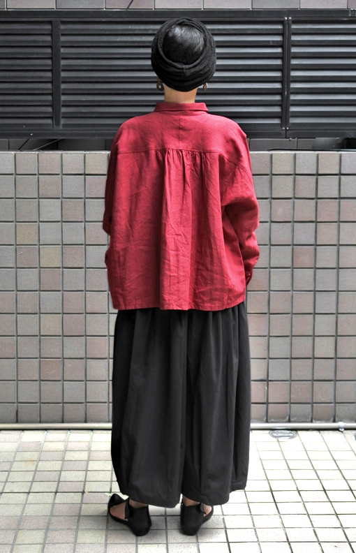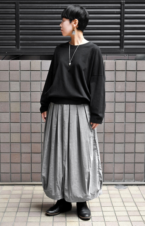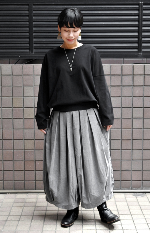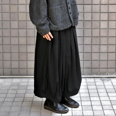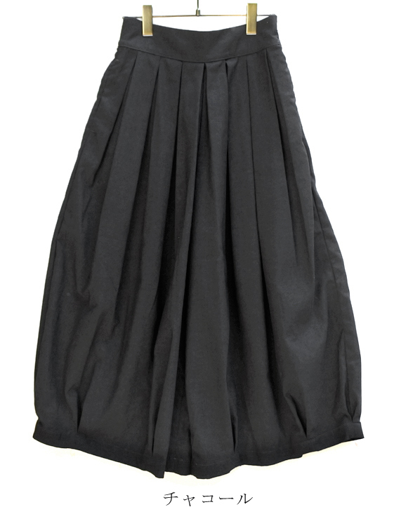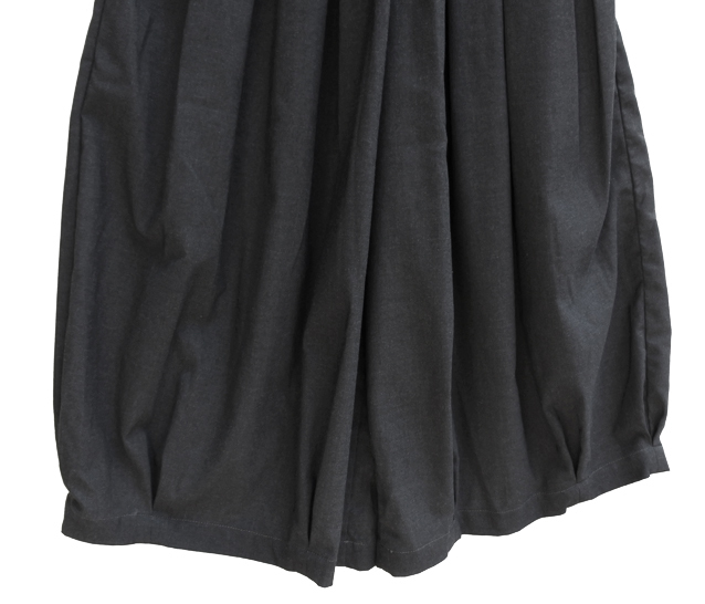 裾に向かってふんわりと丸みを帯びたバルーンシルエットをかたち作ります。