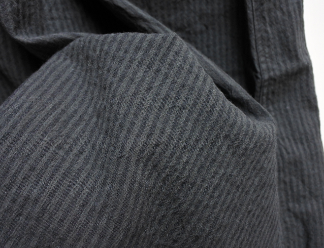 一見、チャコールの無地のような雰囲気ですが、細やかなストライプ柄が奥行きのある表情に◎。
