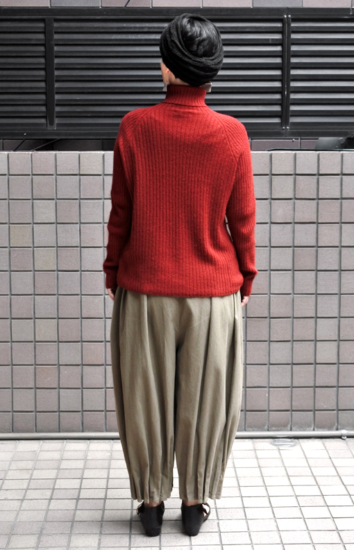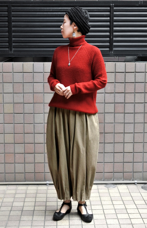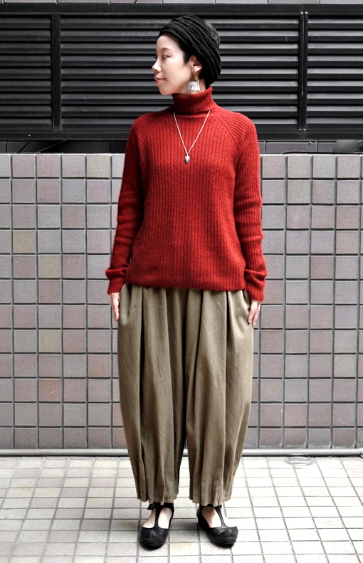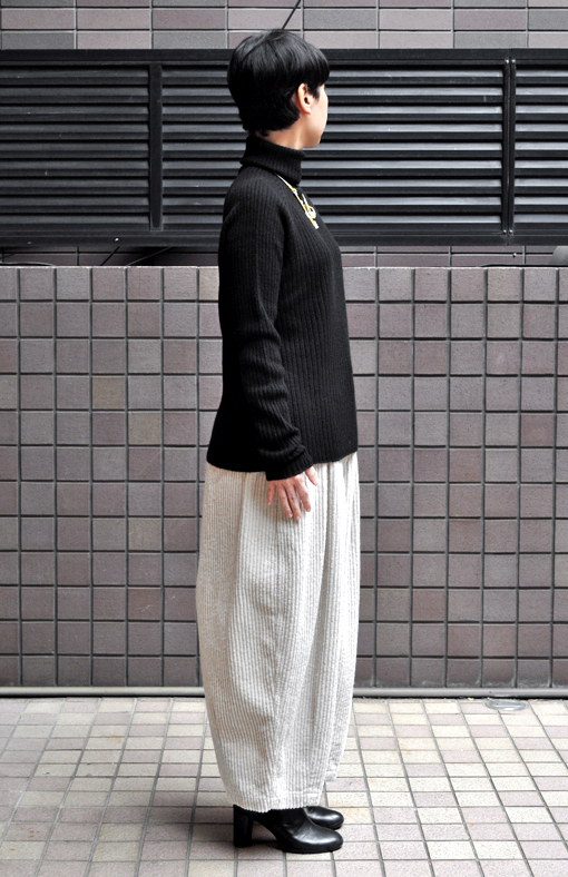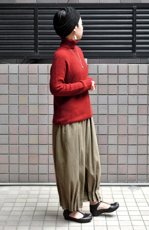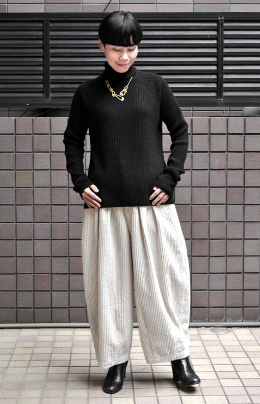 パンツやスカートのウエストにタックインしたスタイルもすっきりと収まり易くお勧めです。