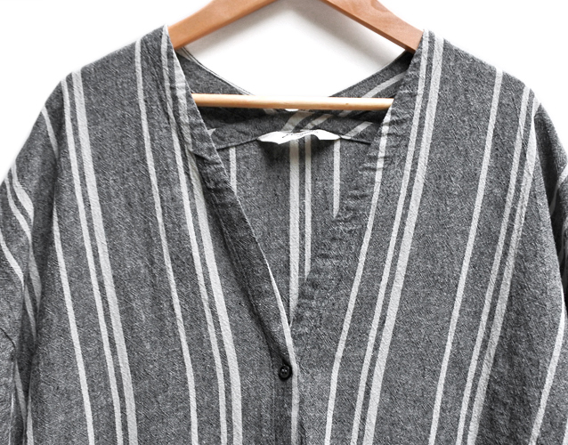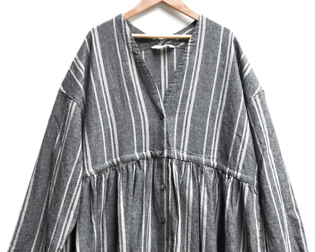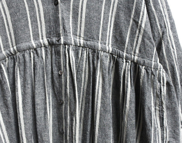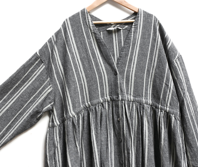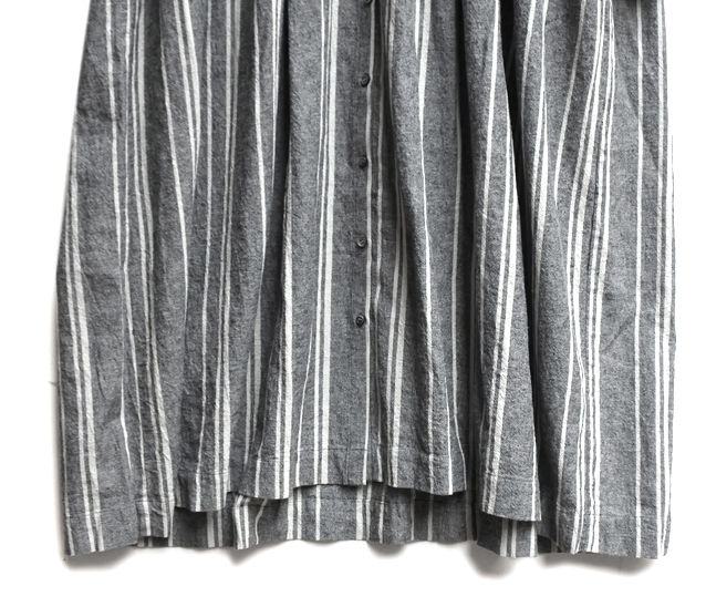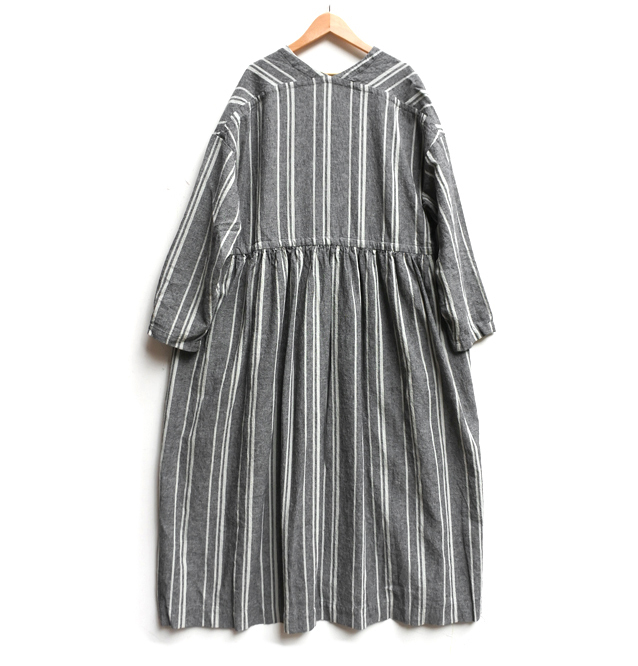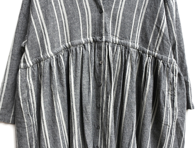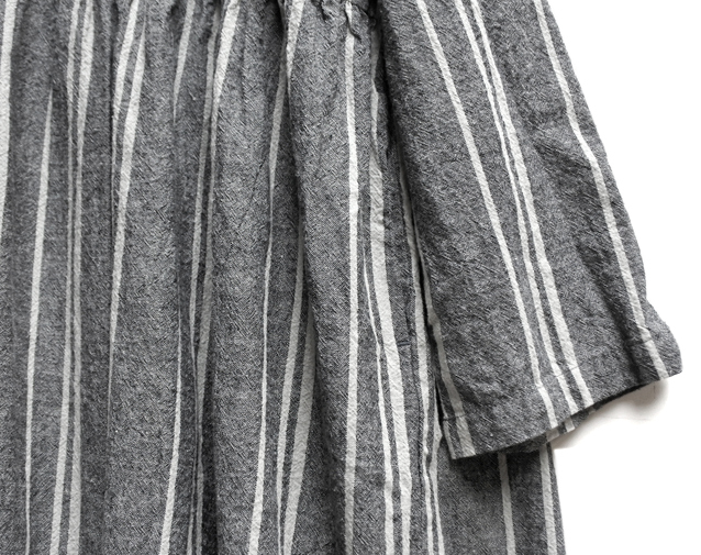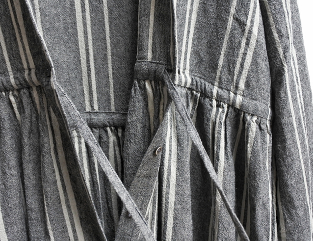 コットンリネンのストライプ生地で仕立てたワンピース。