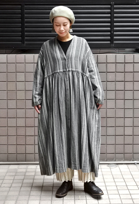 落ち着いた配色のランダムスなストライプが大人っぽい印象の一着。